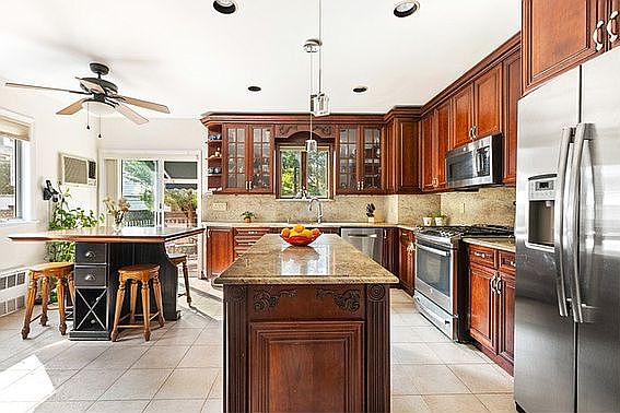 No Fees for renters, the landlord pays the fees...Nestled High On The Hill, 8008 Narrows Ave is a beautiful, custom-designed Colonial Home that is on one of the most charming blocks in Bay Ridge! this lovely home offers so much... When you walk into the parlor which leading to a spacious living room and dining room with walls of windows and a charming tree-lined view! The living room includes a Fireplace and lovely staircases to the second floor that includes all the three Bedrooms/ one full bathroom and one powder-room/ half bath. this house has a custom-designed eat-in kitchen with granite stone Island/ Countertops, a Full finished cellar which is being used as a guestroom or hospitality suite, with a full bathroom, and private entrance, perfect for overnight guests and family members! Brazilian Oak Wood Staircase, floors, Stained Glass Windows, Rear Yard, Private Driveway, and Garage. This Is A Real Gem!! and it can be your home for as long as you wish... There are so many great restaurants on 3rd Ave, which makes dining and winning so much fun, and there is an Express bus on the block that will take you to Mid Town Manhattan in 20 minutes! Call for detailed information or schedule an appointment.