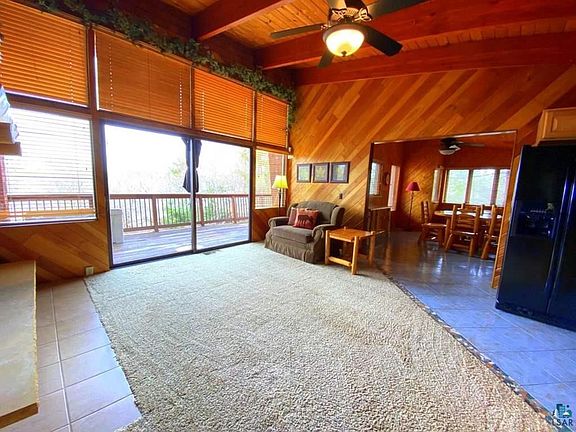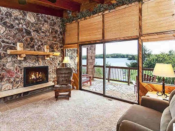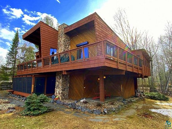 This beautiful year-round lake home is situated on a gorgeous site that has been beautifully landscaped. When you enter the site it reminds you of an enchanted botanical garden with massive boulders, trees such as Japanese pine, apple, and perennial plantings. You'll absolutely love the home and the natural woodwork, some of which from grain elevators. The home offers four bedrooms, including a Master Suite which has its own exterior access. You'll enjoy beautiful views of the lake from the home and elevated deck. There is an enclosed screened sleeping porch fitted with multi-position windows that allow breezes to circulated. The patio nestled among the landscaping is perfect for entertaining. This property features the cutest sleeping A-frame playhouse. Of course you need room for your water toys and vehicles. Here's a big plus, There is a 40 x 30 garage and paved parking area. Other features include a high-tech security system, sauna, and over 250 feet of shoreline. There's just so much you'll love about this amazing home !