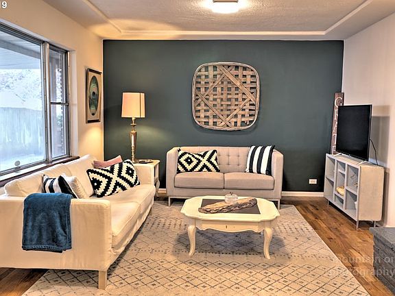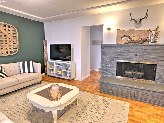 Mid century modern ranch home w original period details & modern upgrades! Lots of charm, refinished hardwoods, built ins, original 50's kitchen w quartz countertops, 2 fireplaces, dining room, newer windows, covered patio w sky lights, attached garage, corner lot, raised beds for gardening. Basement has laundry, storage, & a newly remodeled studio apartment w kitchen & bath for turnkey rental income. Move in ready! [Home Energy Score = 7. HES Report at https://rpt.greenbuildingregistry.com/hes/OR10152791]