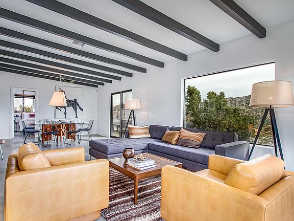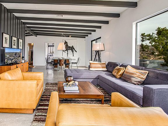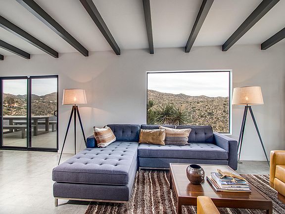 Absolutely stunning 10 acre mid-century property on top of your own hill! Featuring some of the best natural and pristine 360 degree mountain views available in the Joshua Tree and Yucca Valley area. Home has been reimagined by a top designer into a sophisticated timeless mid-century that includes custom high quality furniture in the sale. This open plan layout boasts 2 bedrooms and 1.5 baths with plenty of room to add on and expand additional dwellings in the future. This would make an amazing life long retreat or residence for the sophisticated buyer, Top 10 Vacation Rental, and excellent investment. Don't wait on this one call now!