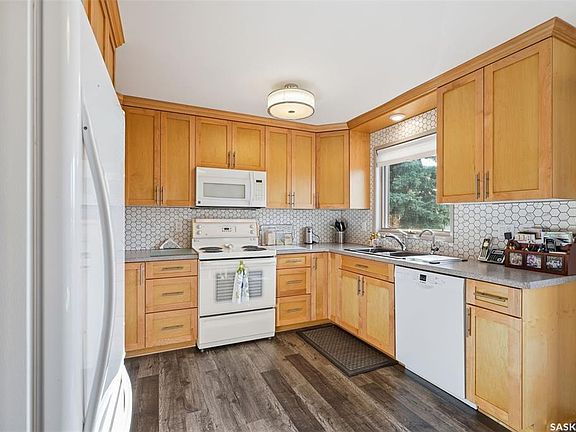 Welcome to this spacious bilevel home located in the friendly community of Rosthern, perfectly positioned across from a peaceful green space and soccer field in a quiet neighborhood. Step inside to a beautifully renovated kitchen and living room that offer a bright and welcoming open layout. The main level features two comfortable bedrooms including a primary with its own ensuite bath. The lower level adds even more living space with two additional bedrooms, ideal for family or guests. Enjoy outdoor living on the beautiful deck overlooking a well-kept backyard, perfect for relaxing or entertaining. An attached garage adds convenience and valuable extra storage. This is a wonderful opportunity to move into a great home in a great location. Come see what Rosthern has to offer, from the recently built school, hospital, parks, arena, 18 hole golf course, restaurant’s, cafe’s and more!