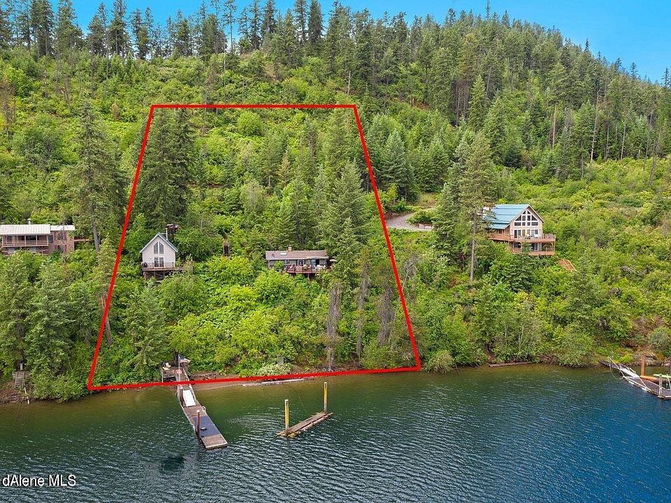 Lake Coeur d'Alene, Wolf Point/Beauty Bay area, two 100' lots, (200' frontage total). Rare opportunity to have two cabins with 200 feet of lake front footage. The Main Cabin has all the charm one could hope for in making memories with friends and family. One private bedroom, but this cabin easily sleeps 6. Stay warm in the spring and fall with the beautiful original stone fireplace. The new expansive deck doubles the space for entertaining or cozying up with a cup of coffee and watching the sunrise. The Second Cabin, with gorgeous pine wall interior, adorable loft bedroom with inside and outside access. It has a tiny house style kitchen and bathroom. Living room has a comfy sofa bed allowing this cabin to sleep up to 6 as well. Cozy and efficient wood stove fireplace creates a perfect escape and is just private enough from the other cabin to feel like you have your own space. cabin's wrap around deck and watch eagles and osprey that nest year round. Seller Financing Available It's not often you find cabins that feels so secluded on Coeur d'Alene Lake. Beauty Bay is just around the corner, and this end of the lake is just a little quieter while still having all the activities you look for at the lake. Cabins come with a boat dock, a third deck on the water, and a private beach with fire pit area.