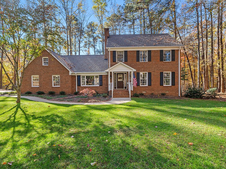 Amazing opportunity in Dutchman Downs! Gorgeous home nestled on 1.01 acres, updates on home since owning it include roof, windows, kitchen and owner suite bath renovation, hardwood floor refinishing, sunroom, firepit area. Formal dining, family room with stone fireplace with cozy wood beam ceiling treatment, office/living room, sunroom, open and bright kitchen, Stainless Steel Appliances, quartz counter tops, eat in kitchen, gas range, pantry, owner's suite up, gorgeous bath with dual sinks, tiled floor and shower with seamless glass enclosure, 2 additional bedrooms, bath, bonus with a closet, and walk out storage, quiet backyard oasis, complete with firepit, entertaining deck, 2 car garage.