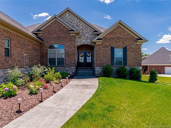 Better than new! this BRICK/STONE combo has beautiful curb appeal, over 2000 SF finished above grade and approx. 1300 SF finished in the walkout basement plus a 3-car GARAGE! Large FOYER, FORMAL DINING room, LIVING room with FIREPLACE and wood flooring. The kitchen offers GRANITE countertops, tile BACKSPLASH, huge ISLAND, stainless appliances and a WALK-IN PANTRY. The master is luxurious with dual sink granite vanity, soaking tub, custom tile shower and large WALK-IN CLOSET! This split floor plan offers 2 other bedrooms on the main floor with a JACK AND JILL BATH. On your way downstairs you will notice a LAUNDRY ROOM with folding table, half bath, coat rack, and a desk/cubby area that adjoins the stairwell. The FINISHED basement offers a large FAMILY room complete with a wet bar, 4th bedroom, full BATH. There is also an OFFICE, a REC ROOM and a storm room which were added in 2019. For the crafter of the house there is a WORKSHOP with double doors offering easy access to the back yard. Plenty of storage area remains in the basement! This is an ENERGY SMART home and has an enhanced SECURITY SYSTEM. The backyard is FENCED for your pets or children and has been recently sodded. Do not overlook the FLOYD COUNTY SCHOOLS for the kids. All room sizes & sq ftg is estimated if critical to buyer must be checked.