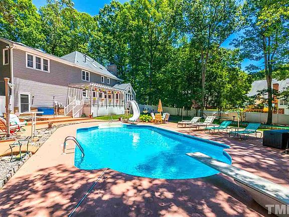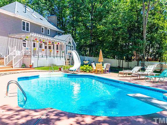 North Raleigh Oasis inside 540. Backyard features in ground pool w/ diving board/slide, Outdoor shower, Bocce ball/Cornhole/Putting surface, Sand Volleyball Ct, Vnyl Privacy Fence. Traditional 4 BR 2.5 B home with numerous features including Double Tray Ceiling in 2 story entry foyer w/dental molding, tile flr w/ nonslip texture, lighted staircase, 2 tiered granite island, kenmore elite appliances (dbl ovens, trash cmpt, cooktop) Custom Cabinetry w/pullouts, Masonry FP w/ GL's. Sunroom. Loft w/wetbar.
