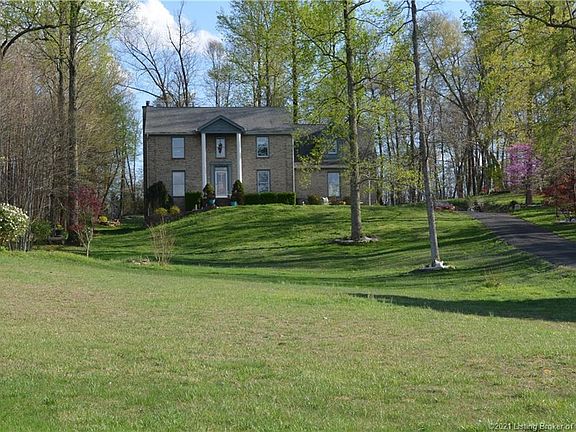 4 bedroom, 3 1/2 bath home with Breathtaking views of a lake. 2 story brick walkout basement, 2 fireplaces, 2nd family room in the basement, screened in porch, 1st floor laundry and a large eat in kitchen with a view of the woods. Dining room, living room, family room with fireplace, and 1/2 bath on the first floor. Spacious Main bedroom with attached bonus room, and bathroom w/laundry shoot. 3 more bedrooms and hall bath on the second floor. The basement has stained concrete floors, and fireplace in the second family room.The house has a Geo-thermal heating system. The house sits on 2.10 acres in a quiet established neighborhood. The yard is nicely landscaped, and has mature trees. New Albany Floyd County Schools. ** There is a First Right on this property **