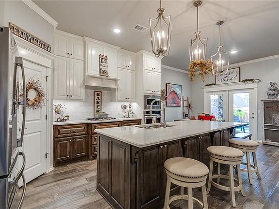 This home is practically brand new! This 4 bed, 2 bath home features wood look tile as the main flooring. The living room has a coffered ceiling, stack stone surround gas fireplace, & 2 large windows. Kitchen has stainless steel appliances, cabinets to the ceiling, an oversized island, large corner pantry, and gorgeous backsplash. The master suite features a box ceiling details with incandescent rope lighting, HUGE walk in closet with seasonal hanging, spacious walk-in shower with herringbone detail flooring, and Jetta Whirlpool Tub. The back patio is covered and has an outdoor fireplace, gas line, and cable/ electrical hookups. Other amenities include underground sprinkler, air filtration system, Rinnai Tankless water heater, R-44 insulation and a TechShield radiant barrier. The 3 car garage has an in ground storm shelter.
