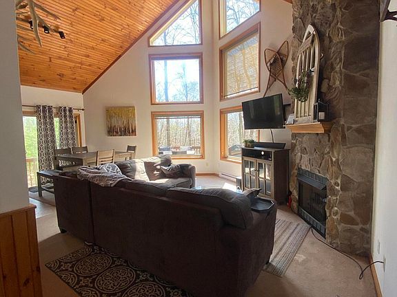 Everything is included with this A-Frame cedar home located 5 mins from the Blue Knob Ski Resort. 3 bedroom, 2 full bath w/ bonus rooms in the basement to be bedrooms & game area/family rm. Gas fireplace, EV charging station, larger detached 2 car garage with storage. Association fees $425.00 a year. Close to 3 lakes Raystown, Shawnee & Indian. Close to Historic Downtown Bedford for shopping and fine dining. Great hunting and fishing area.