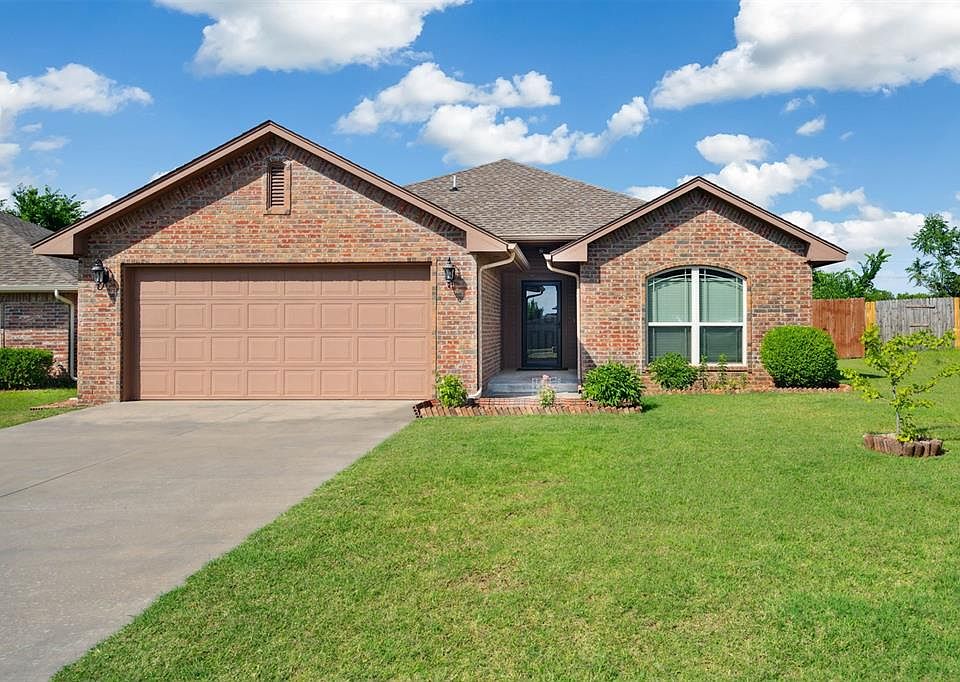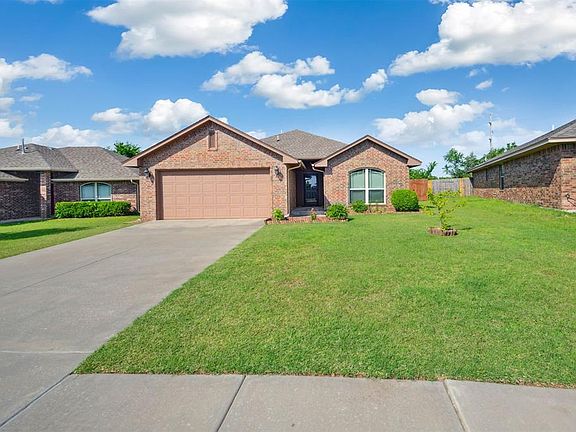 Light, bright and very well cared for! Large front yard with excellent curb appeal and landscaping. The inviting entrance features tiled floor and an open living/kitchen area throughout. Living room offers a beautiful view of the back yard area that is perfect for entertaining with a large covered patio. Adjacent to the living room is a designated dining area. You'll find cozy bedrooms throughout designed for ultimate comfort. Features include: granite counter tops throughout, walk-in shower, large bathtub with double sinks and walk-in closet. Second bathroom offers tub/shower combo with spacious counter area. Located near Tinker AFB. Schedule your showing today!