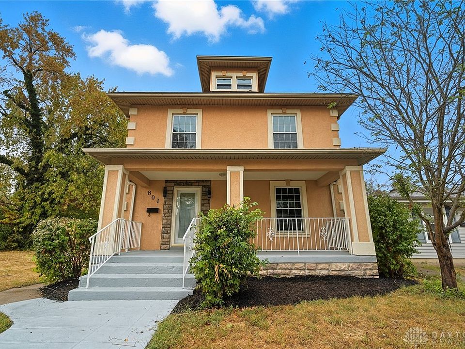 Bright and beautifully remodeled, this 4-bedroom, 2-bath home offers comfort and style throughout. A large front porch welcomes you before stepping inside to thoughtfully designed spaces with unique doorways and modern finishes. The home features a convenient first-floor laundry with cabinets for folding and organization, a large formal dining room for gatherings, and a spacious 3rd-level bedroom perfect for guests, a private office, or a retreat. The full basement provides plenty of storage or room to expand. Updates include a new HVAC system, roof, flooring throughout, and a modern kitchen with sleek cabinets, quartz countertops, and stainless-steel appliances. A perfect blend of charm and modern updates. This is the home you've been searching for, and it won't last long!