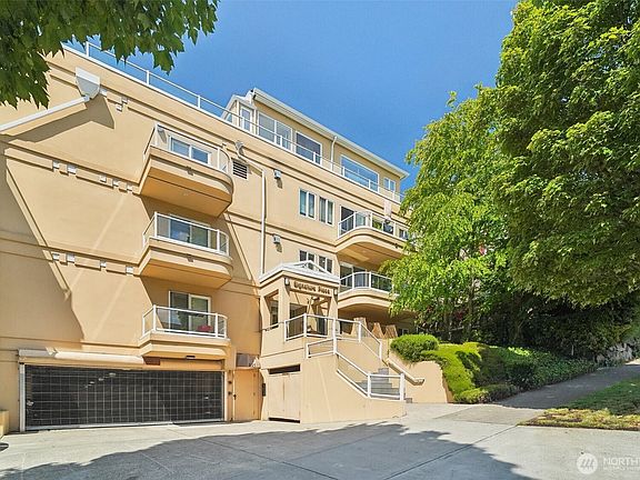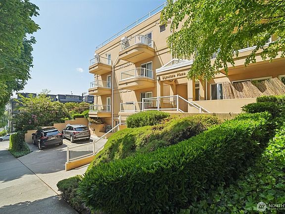 Price improvement! Discover your urban retreat at Signature Place, nestled on Queen Anne Hill with stunning Seattle skyline views. This meticulously maintained, updated condo features SS appliances, stone countertops, and engineered hardwood floors. Freshly painted interiors and abundant natural light create an inviting atmosphere, perfect for entertaining. Relax on your private, oversized balcony with breathtaking southeast city views. The expansive primary suite includes a walk-in closet, and as an end unit with no shared walls, privacy is assured. Prime location just steps from Seattle Center, SLU, and Amazon HQ. Secure gated garage with assigned tandem two-car parking, storage. Welcome home to style, comfort, and unbeatable views!