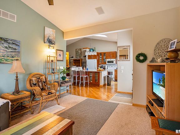 Gorgeous, one-owner custom built 4 bedroom, 3.5 bathroom home in lovely Trails Edge subdivision. Open layout dining and kitchen areas with vaulted ceiling and sky light. Dream kitchen features granite breakfast bar with seating, built-in workspace, and plenty of cabinetry. Spacious primary suite complete with walk-in closet and custom tile shower. Convenient main floor laundry center. Basement boasts a full bar and kitchenette with appliances. Family room is perfect for additional living space or movie nights. You will love the park-like grounds that have fruit trees and vegetable gardens. Enjoy the outdoors on the large deck with a gazebo. Home also has geo-thermal, new roof 2022, radon system, and so much more all in Washington School District. Schedule your private tour today!