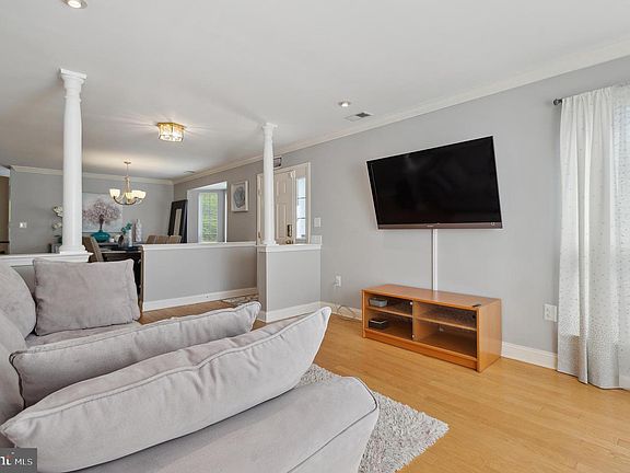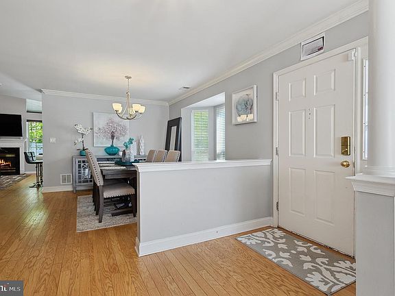 This exquisite, highly desirable NORTH EAST FACING end-unit townhome is located in South Brunswick with a Princeton mailing address! Well-maintained both inside and out, this home is situated on park-like grounds and features details such as hardwood floors, crown molding, and an open floor plan! Upon entry, the foyer is bright and open to both the formal living and dining rooms creating a welcoming atmosphere. Handsome hardwood floors and crown molding flow between both rooms. To the left of the foyer is the living room with decorative columns, multiple windows, and recessed lighting. To the right of the foyer is the dining room with a beautiful bay window and stylish chandelier. Just down the hall is the 2-story family room, warm and inviting with hardwood floors, multiple windows reaching up to the ceiling, and a cozy gas fireplace with wood surround and mantle. The family room and kitchen are open to each other with a breakfast bar dividing the 2 rooms. The kitchen is cheerful with all white cabinets, white tile floor, and sliding doors that lead out to the fenced in backyard. SS oven and refrigerator, Upgraded countertops, and recessed lighting are attractive additions to the kitchen. There is a half-bath on this level with a lovely pedestal sink, attractive mirror and light fixture, and hardwood floors. Upstairs, the generous size master bedroom offers a vaulted ceiling with fan with central light, recessed lighting, large windows, and dual walk-in closets. Relax and unwind in the luxurious Jacuzzi tub surrounded by windows in the ensuite bath, which also offers vanity with dual sinks, stall shower, and tile floor. There are 2 additional bedrooms on this level, both with large windows, ceiling fans with lights, and ample closet space. The hall bath is updated with a modern vanity, and updated shower/tub combination with glass sliding doors. Attractive white fence surrounds the well-maintained backyard which backs to tree lined property. Community amenities include indoor/outdoor pools, gym, clubhouse, tennis/basketball courts, and tot lot. This home is in close proximity to downtown Princeton, restaurants, shopping, award winning South Brunswick schools, major highways, and an easy commute to NYC trains/buses.