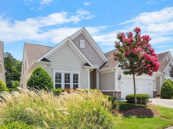 There's nothing better than a well-appointed home on a PREMIUM lot in the Triangle's top 55+ active adult community! Live on the main level but have the flexibility of a bonus room, full bath & guest bedroom on the 2nd floor. Upgrades include: NEW water heater, HVAC, 1st floor paint, New gas range, KitchenAid dishwasher & garage opener. NO carpet - wide plank wood floors throughout inc. the stairs! Kitchen w/granite counters & antique white upgraded cabinetry, center island, slider pull-out drawers. Living room w/gas FP + a sunroom. Epoxied garage floor & attic storage. Window shutters in common areas. 2 storm doors with disappearing screens. Enjoy top notch amenities!