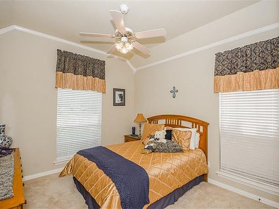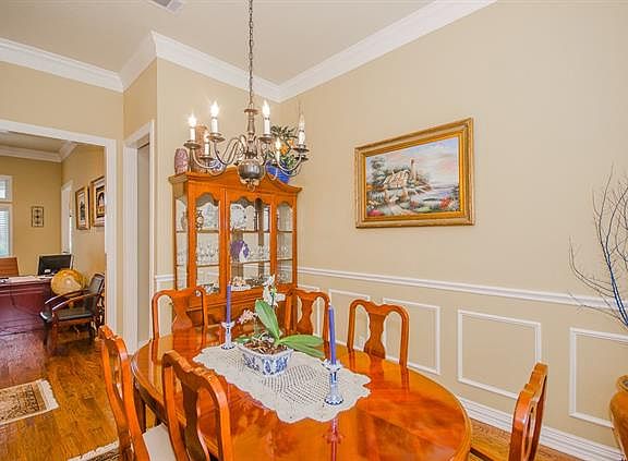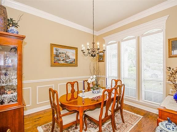 Fabulous home in gorgeous neighborhood. This one story home offers 4 bedrooms, 3 baths, 2 large living areas, and 2 dining areas. The bedrooms are split three ways, offering great privacy. Beautiful wood floors throughout most common areas. Large kitchen with lots of storage and granite counters. This home features many upgrades, including garage built-ins, granite in utility, extended patio, and beautiful landscaping. Call now to see this home.