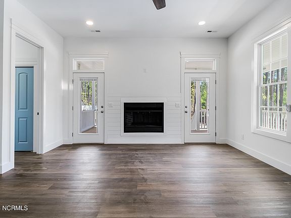 To the left of the front door you'll find the first of three bedrooms with windows to spare. To the right, two glass panel doors flank the fireplace and lead to the porch, bringing the beauty of the outdoors in. Throw these open for an incredible breeze or for easy breezy flow while entertaining. Beyond the kitchen and dining you'll find the second guest room, full guest bath and primary bedroom. The master offers a spacious walk-in closet and beautifully designed en suite with double vanity and walk-in shower. You'll find durable, waterproof LVP flooring throughout.
