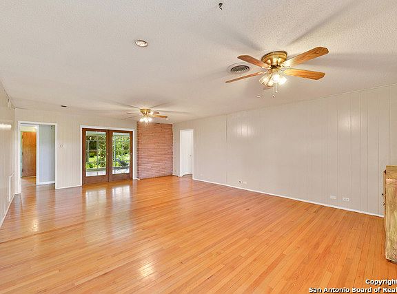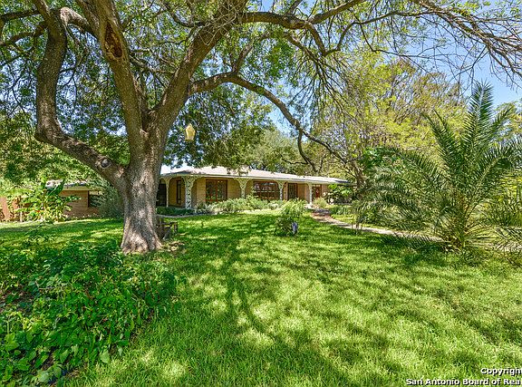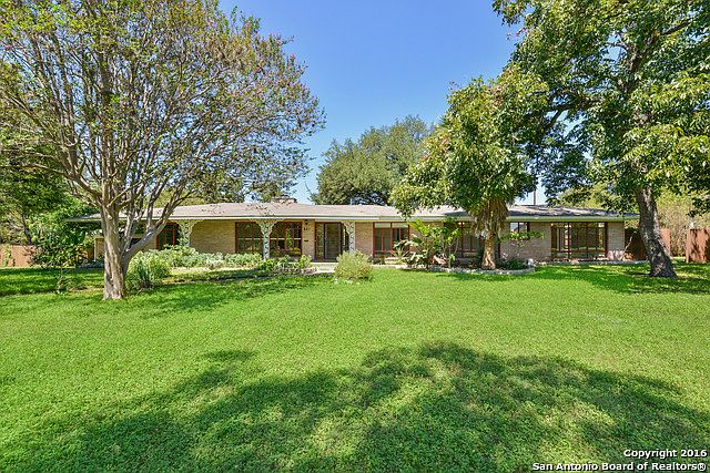 Beautiful and expansive single story in the HEART of Terrell Hills. Great curb appeal with home completely fenced and sitting on .80 acres. Kitchen with uniquely intricate countertops and backsplash. Gleaming hardwood and tile throughout. Beautiful brick fireplace in large living area. Both bathrooms have a charmingly retro feel. Tons of natural light in all bedrooms. Backyard with fruit trees, patio and parking entry through rear. Excellent location with easy access to downtown, the Pearl and Ft Sam.