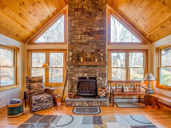 Carter Notch Road in Jackson. Classic 3-bedroom cape with mountain views, outdoor hot tub, striking 1940's stone fireplace, and a successful rental program. Updated to today's standards with heat pumps, a/c, modern baths, energy efficient insulation, new appliances, and a generator. Many original details remain to offer charm and a true NH feel. The recent great room addition features handsome masonry work, vaulted ceilings, a wood stove, and window filled walls. Property is being sold furnished. Enjoy life in a quintessential New England town with world class xc skiing, dining, hiking, golf, and alpine skiing down the road.