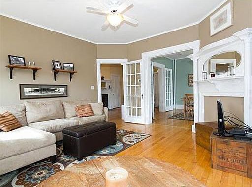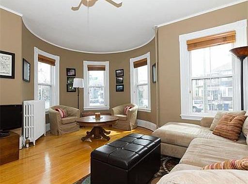 Victorian flair in Monument Square! This landmark building at the edge of the Pondside neighborhood in Central JP beckons. A large foyer with fireplace mantel and lots of period detail welcomes you into the bright and spacious home. The living room with circular turret style bay window is adjoined by the dining room with bay window, both overlooking Monument Square. The kitchen updates include stainless steel appliances, birch cabinetry with center island and there is still enough space for a kitchen table. Two bedrooms are placed at opposite ends of the home. The bathroom retains the original claw foot tub reminding you of the original charm of the Victorian styling. The laundry is conveniently located in the unit. There is plenty of storage in the basement. Don't miss this lovely home located in the heart of it all!