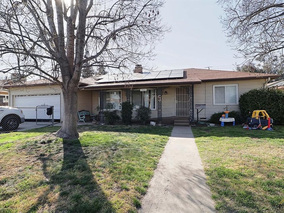 Cute home ready for new owners! This home has a fenced front yard, perfect for letting the kids run around safely. It also has almost 1700 square feet of living space including 4 bedrooms, 2 bathrooms, separate living and family rooms, new windows, stainless steel appliances, a pool for the hot summers, a covered patio, a 2 car attached garage and solar panels to keep the utility bills down. The backyard also has a separate fenced area where you can have your own garden or many other possibilities! Many built in's throughout the home provide ample storage space. Don't wait! Call today!