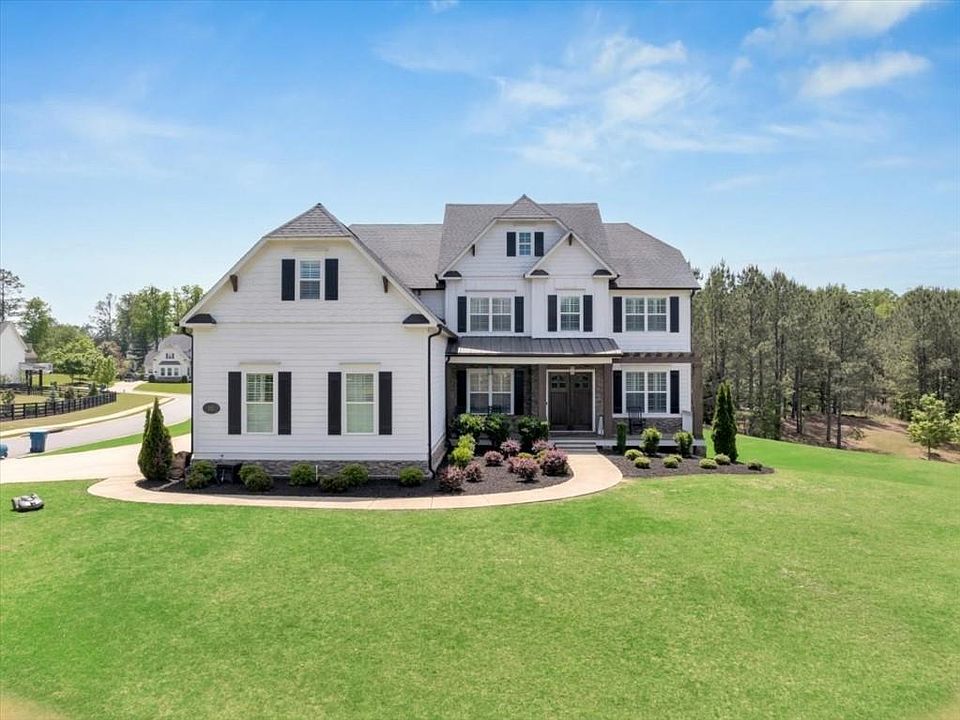 Absolutely stunning home perfectly situated on 1.1 acres in sought after gated Blue Valley! Located in the top rated Milton High School district, minutes to Crabapple, Downtown Alpharetta, Avalon and barn Publix. Main level features a guest suite with a full bathroom, large two story great room with expansive wall of windows overflowing with natural light, floor to ceiling stack stone fireplace, inviting formal dining room with bar/wine chiller and home office with custom barn doors. Entire home pre pre-wired for audio, upgraded lighting and plantation shutters throughout. Designer kitchen with top of the line appliances, oversized island, quartz countertops, extended cabinetry, separate breakfast area, under counter lighting and walk in pantry. Secondary level offers an oversized owners suite with an adjacent sitting room, spa-like master bathroom with frameless glass shower, separate soaking tub, dual vanities, his & hers walk-in closet. Three additional bedrooms with full bathrooms, one being Jack and Jill, oversized laundry room with a folding station. Fully finished terrace level ideal for entertaining offering a stunning custom-built bar, theatre room, large rec room/game room, full bathroom and ample storage space tucked away. One of the few homes with a four car garage, extended 8ft doors, 3 runs of 240 volt for 2 car chargers and 1 for potential 4 post car lift! Perfectly level and private backyard ideal for your heated pebble tec pool, outdoor kitchen and fire pit.