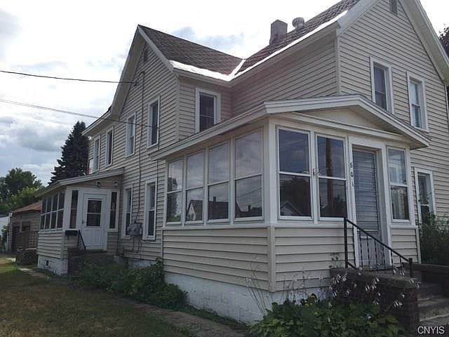Large home conveniently located near JCC, Route 81, shopping and restaurants on friendly Watertown street. Main floor has newly renovated kitchen, with three bedrooms, den, two bright enclosed porches, 1 ½ baths, full basement. Oversized garage. Fully independent income-producing living space on second floor has remodeled kitchen and bath, two bedrooms, large bright living room. Two separate furnaces and water heaters. Plenty of parking and no traffic on cul-de-sac."