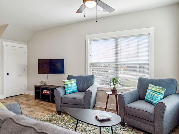 The new and modern living room comfortably seats 5 and has a 40-inch Roku tv on a fully movable wall mount so you can position the tv perfectly for your viewing and streaming pleasure.