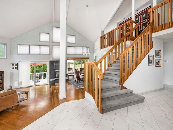 Stunning custom built home backing up to the pond in the highly sought after Katherines Wood Neighborhood! Bright open floor plan with vaulted ceilings and tons of windows. Hardwood flooring in the great room and dining room added 2017.Spacious updated kitchen with huge center island, built in planning desk, and eating space. First floor primary suite with his and hers walk in closets, bath with double vanities, walk in shower, and tub. The upstairs has 2 bedrooms, full bath & loft overlooking the great room. Huge rear deck overlooking the pond and surrounded by mature landscaping. Improvements since 2017 include Hot water heater 2017, roof 2017, hardwood floors and new tile 2017, gas range 2018, New HVAC 2019, garage door opener 2021, sump pump 2021, new gutters, new fridge and freezer