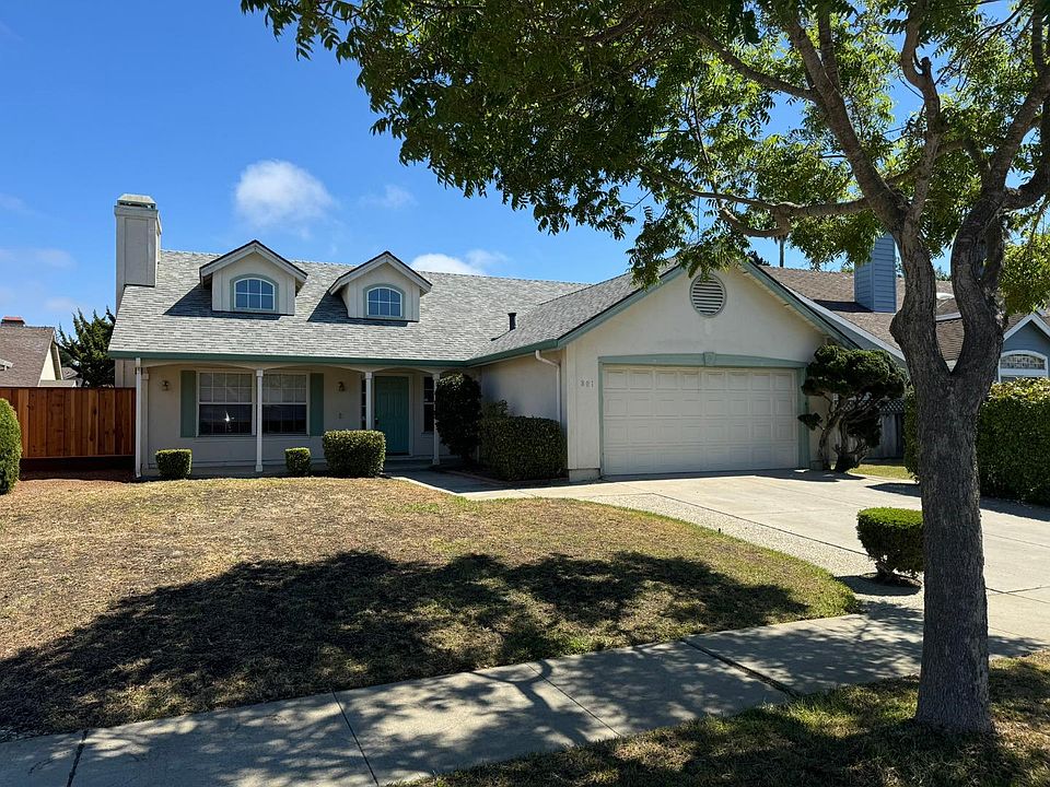 Great three bedroom / two bath home. When you enter you will find the living room with a wood burning fireplace and a dining area. Past the living room in the spacious kitchen with another eating area. The bedrooms and bathrooms are down the hall. the primary is large with a nice sized bathroom. Their are vaulted and high ceilings. The back yard is fenced an a portion recently replaced. The roof was replace in 10/18. There is a new gas furnace along with newer appliances. There is a two car garage with two open parking spaces as well. This homes is just waiting for your personal touches. Go take a look and see for yourself!!!