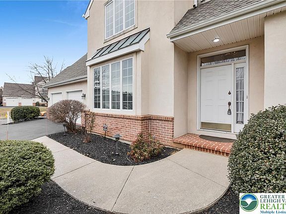 Located in Allentown’s desirable West End, just moments from Trexler Park and Wegmans, this end-unit townhome delivers a wonderful combination of space, comfort, and low-maintenance living. Offering 3 bedrooms, 2.5 baths, and a well-designed layout, the home easily adapts to a variety of lifestyles. Inside, the welcoming Living Room features a gas fireplace and French doors that open to a quiet patio—an inviting spot to relax or enjoy your morning coffee. The Dining Room flows seamlessly from the living space, making it ideal for both casual meals and entertaining. The eat-in Kitchen is finished with hardwood flooring, abundant cabinetry, generous counter space, and a bright breakfast nook overlooking the courtyard. The first-floor primary suite provides a peaceful retreat with plush carpeting, two spacious closets, a full bath, and abundant natural light with serene views. Upstairs, two additional bedrooms, a full bath, and a flexible loft area offer space for a home office, lounge, or hobby area. A partially finished basement expands living space and provides ample room for storage. Notable updates include a new roof (2021), HVAC system (2017), and water heater (2024). Enjoy the convenience of maintenance-free living with lawn care, landscaping, and snow removal included. Ideally situated near hospitals, shopping, Rt 309, I-78, 476, and within the Parkland School District. Two-car garage. Schedule your showing today!