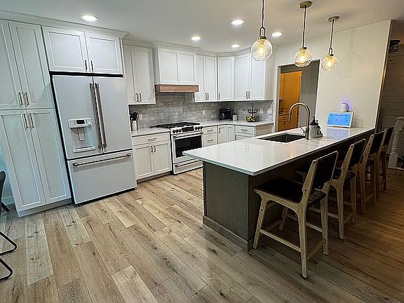 Over 3,700 sq. ft. of living space with a split-bedroom floor plan, spacious master suite, and a fully finished walk-out basement. Updated kitchen with solid wood cabinets, Quartz countertops, and all appliances included. Cali Vinyl Plank flooring throughout the main level.