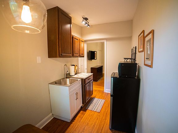This studio unit has refinished hardwood flooring, large window overlooking the natural area, a bathroom with a shower, and living room space. The unit comes fully furnished with a queen size bed, dresser, sofa, and a flat screen television. A separate room has a kitchen area with a dinette. Private access to heating and air conditioning. There is access to a spacious kitchen, laundry and dining area across the hall. Owner pays for all utilities (electric, gas, water, trash, Wi-Fi, lawn maintenance, and pest control). No smoking allowed in the house. Each unit has one parking spot. Owner charges a flat $200/month to tenant to cover utilities.