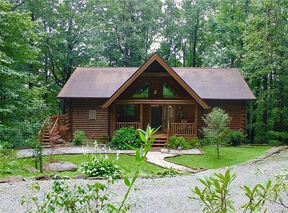 This custom built log home sits on a beautifully landscaped lot overlooking Indian Camp Mountain. The cathedral ceiling and floor-to-ceiling rock fireplace fill this rustic lodge with the comfort of local mountain living. With a split bedroom floorpan, welcoming front porch, expansive back deck, and unfinished basement with great ceiling heights and plumbing, this property would make a great primary residence or vacation rental.
