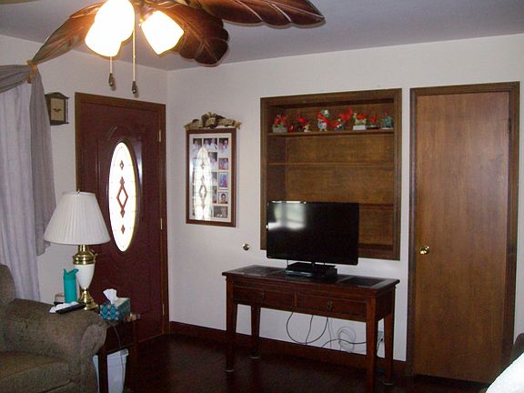 All brick ranch style home with full basement.. Corner lot. Newer roof. Pella windows with built in blinds. New carpet in master bedroom. Television in master stays. Hardwood floors in living room/hall. Many built ins. Gas forced air furnace; central air. Full bath in the basement. Pool table is included. Newer exterior doors throughout.