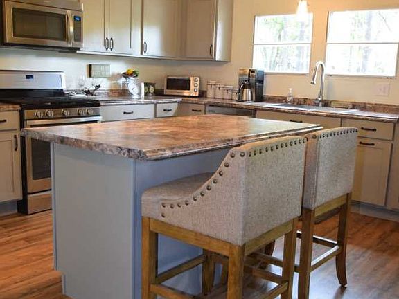 Fully remodeled & modernized home - ready to move right in! Situated on 2 beautiful wooded acres this home features stunning cloud gray custom cabinets with soft close doors in kitchen & baths, oil rubbed bronze fixtures, 5 burner SS gas range, oversized SS sink, large island, jacuzzi tub in master bath with separate shower, copper sinks in baths, walk-in closet in master, screened-in front porch, deck in the rear to view nature and much much more!
