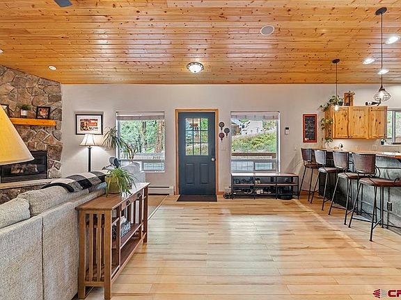 Welcome home! This single level mountain home is what we call quintessential Colorado. Located near the bottom of the Forest Lakes subdivision just north of Bayfield and a short drive to Durango; this home is move in ready. The home features an open floor plan with 1,834 SF of living space and detached 3 car garage with ample storage. As you approach the home you are greeted by a paved driveway with ultimate curb appeal. The cedar sided home features a full length covered porch with low maintenance composite decking where you will find the perfect spot for cool evenings sitting in a comfortable chair reflecting on the natural beauty of the area. This is an open concept floor plan with vaulted T&G ceilings throughout the main living area. The kitchen features knotty hickory cabinets, large built-in pantry, and breakfast bar perfect for entertaining. The living area is large enough for a sectional couch to enjoy the ambiance from the gas stove on those cool winter days. The master bedroom features a private en-suite bathroom and large walk-in closet. The three additional bedrooms, a second full bath and laundry room round out the living space. The thing that sets this property above the rest, is the 1200 square foot 3 car detached garage. The garage was built in 2013 and provides endless possibilities (wood shop, toy storage, etc.) and has tons of storage. Schedule an appointment to see all this home has to offer, you will be glad you did!!!!