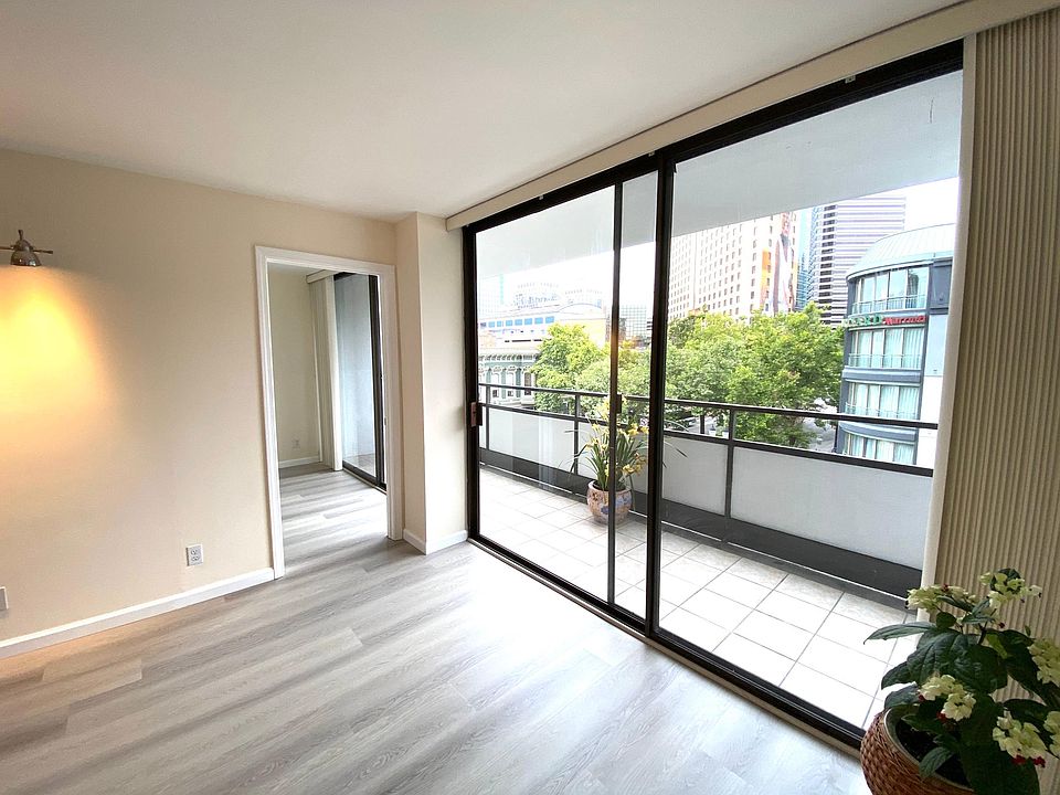 Property is located at 801 Franklin St, 4th floor, City Center Plaza, Oakland, CA 94607 Living room with floor to ceiling and big balcony with view. Walk-in storage room in unit. Coin-operated laundry facilities in building. One car parking space in building's underground garage included in rent. Big community lounge in building and beautiful courtyard. 24 hours Security. Centrally located near Chinatown, Jack London Square shops & Financial District 2 blocks from 12th Street BART, 11 min BART to SF Embarcadero No pets, Non-smoking. Owner pays water, garbage and gas. Tenant pays for electricity bills. No pets, Non-smoking.