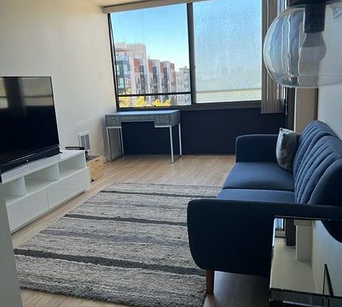 In the heart of Oakland, this fully furnished condo sits right between Old Oakland and Chinatown making this a commuters dream. Bright and sunny two bedrooms with two large walk-in closet/storage room. Quiet and well insulated separate living and dining space is great for entertaining. Renovated kitchen and new appliances (refrigerator, dishwasher, stove/oven with built-in air fryer, filtered water faucet, and microwave). Brand new hardwood floors and updated bathroom with modern finishes make this space feel like home. Floor to ceiling windows that leads out to a large private balcony overlooking downtown Oakland is a plus. Washer and dryer room and one parking space included in the building. Very secure building with 24x7 front desk/security. Very well situated close to lots of restaurants, shops and bars. Less than a 5 minute walk to BART Oakland City Center Station at 12th Street and a short 12 minute ride to San Francisco. Easy freeway access to Interstate 980, 880, 24 & Bay Bridge. Very close to Old Oakland, Swans Marketplace, Chinatown, Jack London Square and Oakland Museum. Walk Score: 100 Transit Score: 88 Bike Score: 84 * Fully furnished * Gas, water, garbage, and association fee included * No pets and non-smoker 1 parking in garage Washer and dryer in building.