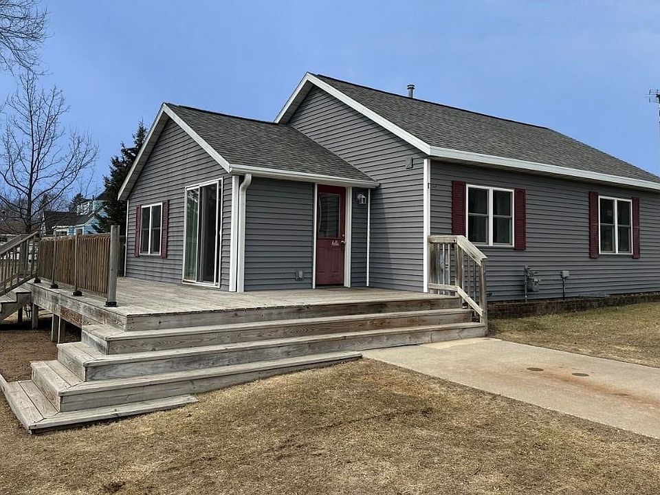 Centrally located and well maintained, 2 bedroom, 1 bath home situated on a corner lot. Walking distance to school, shopping, rec center and more. Patio doors off kitchen to large deck, spacious basement that offers area for workout space, rec room or extra storage. Don't wait this home won't last long! The photos are original and AI Generated.
