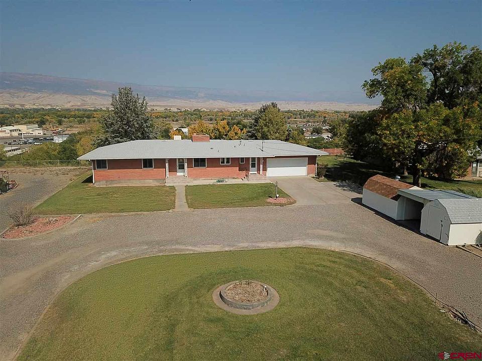 A spectacular and rare opportunity in Delta! Brick ranch style home with basement, sitting on almost 1 acre with fantastic Grand Mesa views! This classic home enjoys a large living room with picture windows, wood burning fireplace, built in hutches and three generous sized bedrooms. Nice master bedroom with three quarter bathroom and large closets. Kitchen and dining area flow together nicely. Basement is mostly finished with absolutely incredible space and opportunity, heated by gas stove. Also downstairs is a spare room for office/hobby room (heated by baseboard heat) and utility room with great storage. The property has nice mature landscaping, sprinkler systems, well for irrigation, two storage sheds and an abundance of parking! This home has been well loved and taken care of for many years. A brand new sewer line was just installed to City of Delta Sewer Main. Don't miss out on this one!