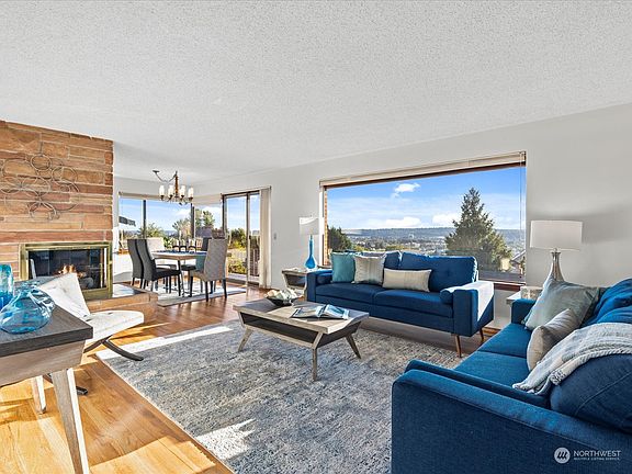 Enjoy stunning mountain, city & lake views and live in one of the most coveted neighborhoods in Renton. A stylish entertaining courtyard greets you w/ flexible floor plan perfect for all lifestyles. Main floor living space has huge views & boasts stone floor-to-ceiling fireplace & opens to wrap-around deck. Chef’s kitchen has tasteful updates including dual ovens, expansive cabinetry & large eating nook. Main floor has primary suite, full bath + guest suite. Lower level has bonus room w/ mid-century built-in bar, 2 BR, BA, large storage room & opens to covered patio & oversized sunny fenced yard w/ greenhouse. Detached garage may have potential for rental/ADU. Minutes to Bellevue & Airport. Spectacular neighborhood park a few blocks away.