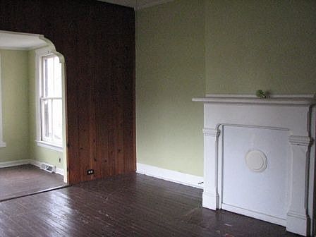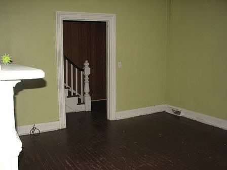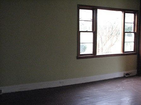 Exterior Features: This is a two story 2br/1bath single family home with basement. Exterior of home looks to be in good condition. Frame is wood on concrete. Siding is beige in color and is not in bad shape. Windows are wood frame and are all intact. Roof is asphalt shingle and doesn't look as though it needs repair. Yard is gated and looks maintained. Porch is concrete. No driveway or garage. Lot size looks pretty decent. Interior Features: The interior of this home is in good shape and is complete for the most part. Living room has nice wood floors, creme colored walls, and white molding. The kitchen is decent in size, complete with cabinetry, sink and tile floor. The kitchen extends to a small dining/pantry area. Bedrooms are in great shape with wood flooring. The bathroom is complete with sink, toilet, and, shower/tub. Floor is tile and walls are pink. Basement has concrete floors and white cinder block walls. Mechanics are intact, including a HVAC unit, hot water heater, and forced air unit.