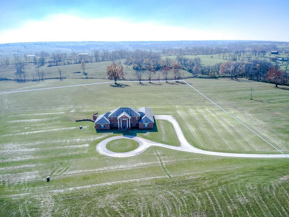 Remarkable home on 137 beautiful acres of bluegrass farm land. This stately home boasts 6 large bedrooms with en suite baths, a private first floor primary suite including a fireplace, kitchenette, private sunroom, massive bathroom, an adjacent bedroom that could serve as a nursery or office. An elevator makes all four floors of this home easily accessible. Professional grade chefs kitchen is the center of the home complete with 4 dishwashers, top of the line gas stove and ovens, an oversized refrigerator and granite counter tops. Surrounding the kitchen are endless entertaining spaces. The basement, first and second floors have their own laundry. Over 3000 square feet of walk-out basement awaits your vision for additional space. With woods in the back of the property and rolling pastures throughout. 4000 bales of hay harvested in 2020. This property is in 2 Tracts The house and 26 acres and 111 acres. It could be divided after purchase.