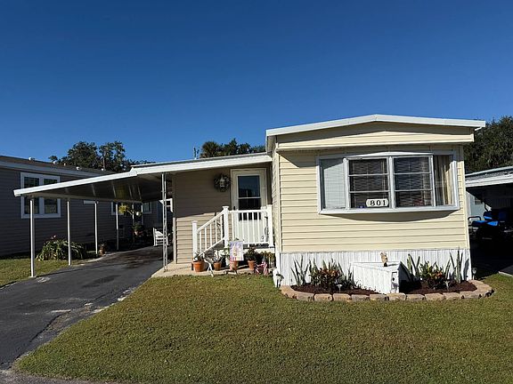 Experience relaxed Florida living in Lake Griffin Mobile Home Park, a welcoming 55+ waterfront community with boat docks available for rent. This charming 2-bedroom, 1.5-bath split floor plan home offers comfort, privacy, and thoughtful updates throughout. A brand-new roof was just installed, and the home features an open, airy layout with a 192 sq. ft. enclosed addition, bringing the total living area to 864 sq. ft. The master bedroom is privately situated on one end of the home, while the guest bedroom-complete with its own half bath-is on the opposite side. Recent improvements include updated plumbing, new flooring, and a brand-new shed for added storage. The enclosed addition offers year-round comfort with a mini-split system, double-pane vinyl windows, and sheetrock walls. The central A/C (2015) keeps the rest of the home cool and comfortable. Lake Griffin Mobile Home Park offers peaceful surroundings while keeping you close to shopping, dining, medical facilities, and downtown Leesburg. Enjoy lake access for boating, fishing, or simply enjoying the Florida lifestyle. This move-in-ready home offers the perfect blend of privacy, convenience, and community. Schedule your showing today!