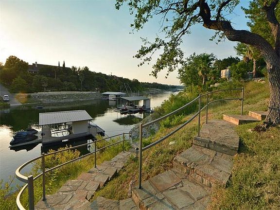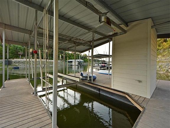 The ULTIMATE waterfront home for entertaining. Celebrate waterfront living from one of the best patio and pool areas. Owner has remodeled kitchen, dining, living, and master bath, with quality materials. Perfect architecture nestled on 1.5 acres with guest suite that compliments the lake lifestyle. Open kitchen with massive work island and high-end appliances. Quality windows and doors, metal roof, designer carrera marble in master bath, diving pool, PRIVATE BOAT DOCK located in peaceful cove