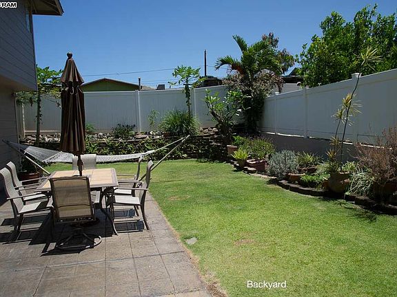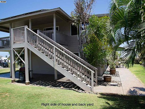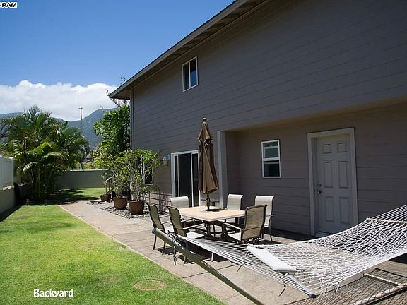 Two-story, corner lot home in Grand Fairways North in Maui Lani. This home is perfect for your family! Some features of this home are "Owned" Photo Voltaic, Solar Water, Central AC, Enclosed back yard with a stucco wall and iron fencing and locking gates on each end of the property, a retaining wall was built for a raised garden bed, large covered lanai upstairs with great Maui Mountain Views, recently sealed, stamped concrete lanai surrounding 3 sides of lower level with a patio area. Marble entryway, living space/kitchen and over sized Master bedroom with a large walk in closet, dual shower heads and a Jacuzzi tub on upper level. Kitchen has a beautiful granite island with seating for four, and all stainless steel appliances. Easy maintenance with bamboo laminate flooring throughout the home! No Carpet! Windows tinted throughout. Lower level has 3 bedrooms and 1 full bath. Land Tenure: Fee Simple, Agent License #: RB-19645
