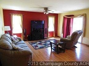 Welcome home!! This spacious ranch with rounded front door and brick pillars at the front porch are just a few of the many touches throughout. Hardwood floors the front living room are a step inside, followed by the formal dining room and leads you straight to the open layout of the family room and kitchen. The kitchen comes with LOTS of counter top space and cabinetry and breakfast bar. The family room leads out to the deck and almost every room give great views of the water fountain feature in the pond. **Short sale, all offers subject to bank approval**