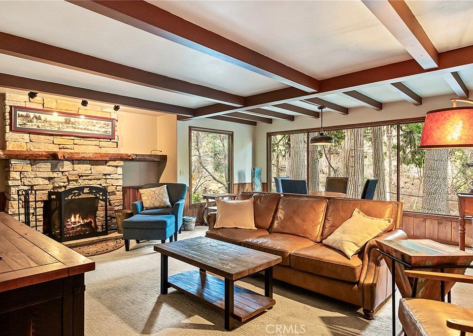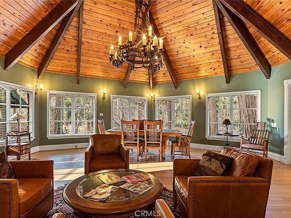 THIS IS A SCREAMING DEAL!!!! WELCOME to the MOST ENCHANTING HOME in Lake Arrowhead, Sprawled Out Along a Gorgeous Wooded Lot with Lush Landscaping and Dogwoods All Around... Yes, this is One of those Amazing Homes that Everyone Loves Along Kuffel Canyon Road! This is Truly a MAGICAL HOME from the Dreamy Walk up the Driveway, then Stepping through the Really Cool RUSTIC HOBBIT DOORS to the Entry! Every Room Just Makes You Say WOW! The DOME ROOM Has Fabulous Windows on Every Wall Bringing in the Amazing Nature Outside. The Fireplace is Such a Perfect Touch for this Captivating Room with Wood Beams Up Above. The Kitchen Has Newer Appliances & a Pantry. Across the Hall is the Super Cozy Den with Floor to Ceiling Windows, Capturing the Beauty Outside! This Room Has a Wonderful Fireplace too and is Just Sooo Inviting!!! Down the Hall are Two Overside Bedrooms with a Jack & Jill Bath. There is also a Door that Leads to the MOST BEAUTIFUL HARDWOOD DECK that Was Just Built Last Year. Upstairs is an ABSOLUTELY CHARMING Master Suite with Private Deck and Bathroom with Jetted Tub & Separate Shower. Such a DREAMY Place to take a Relaxing Bath!!! On the Lowest Level is a Fantastic Game Room with Pool Table & Bar Area, Just Next to the Laundry Room and Access to the 2-Car Garage! This is Such an AMAZING HOME!!! Furniture Can Be Negotiable Minus a Couple Small Exclusions. This is One of those REALLY SPECIAL ONES!!