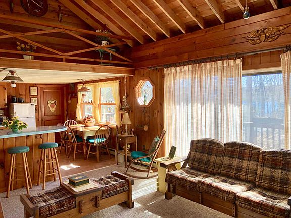 The perfect getaway! Charming Rustic Cabin with seasonal lake views of McConnell Pond. Super Low Taxes too!! Home features 3 bedrooms. 2 lower level bedrooms & 1 spacious bedroom on the upper level. Open Eat In Kitchen to the Living Room with Cathedral Ceilings & a Floor to Ceiling Stone Faced Fire Place. Home has gleaming hardwood Floors & Ceramic Tile in the Kitchen & Lower Level Bath. Loft area fits a pull out bed and over looks the Living Room. Beautifully set on a corner lot on a private cul-de-sac. Walk to the Lake or enjoy the beautiful views from your spacious deck. All located in the amenity filled community of Hemlock Farms. Just a few miles to Rte 84 for quick easy commute to NY & NJ. Minutes to the Historic town of Milford & the gorgeous Lake Wallenpaupack!