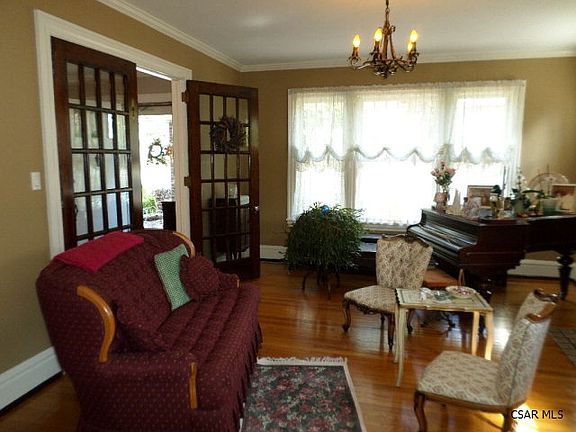 Elegant 3 story brick home in Greater Johnstown School District. Main level has kitchen has linoleum flooring & oak cabinets, foyer has open staircase & french doors to living/dining room, living & dining room feature gas log fireplace & h/w floors and full bath w/ jetted tub & all glass shower stall. 2nd level has 4 large bedrooms & 2 full bathrooms. 3rd floor has additional living space. Full unfinished basement w/ laundry hook-ups. Over-sized 2 car garage. Ask about a one year home warranty. Call today to schedule a tour!!
